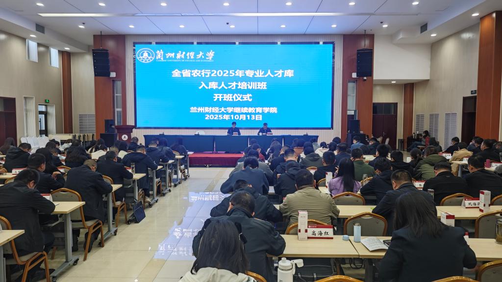 1013日上午,由中国农业银行甘肃省分行主办、兰州财经大学承办的全省农行2025年专业人才库入库人才培训班在和平校区开班。甘肃省分行人力资源部资深专员梁建云主持开班式。农行甘肃研修中心党委书记、常务副主任廖海洋作动员讲话,从学习态度、培训纪律、成果转化等方面提出具体要求。