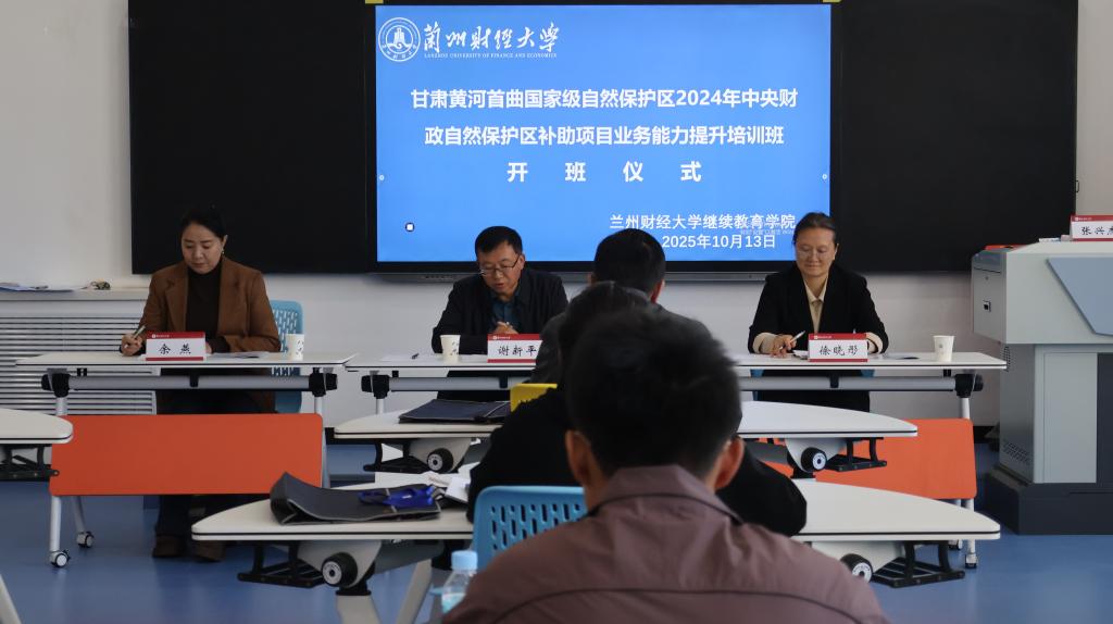 10月13日下午,由甘肃黄河首曲国家级自然保护区管护中心主办、兰州财经大学继续教育学院承办的甘肃黄河首曲国家级自然保护区2024年中央财政自然保护区补助项目业务能力提升培训班在我校段家滩校区顺利开班。继续教育学院直属党支部书记徐晓彤致辞,甘肃黄河首曲国家级自然保护区管护中心党委书记、主任谢新平讲话。副院长余燕主持开班式。